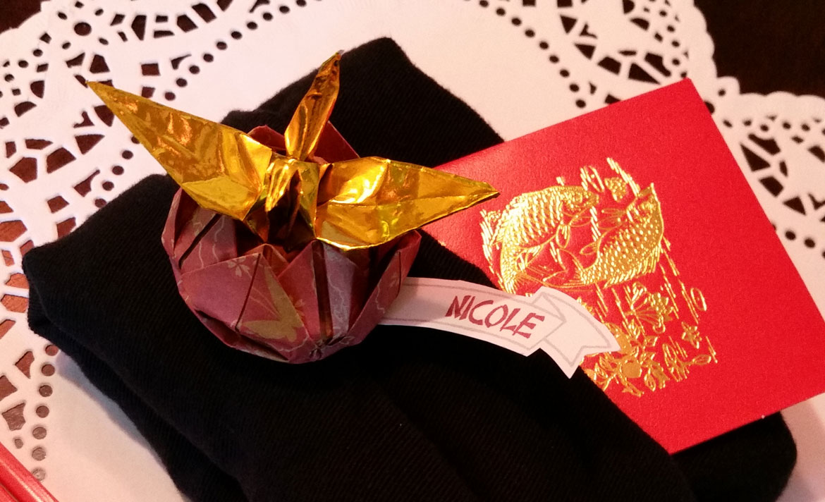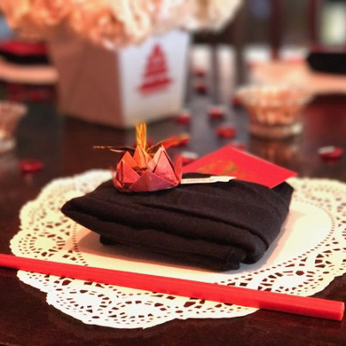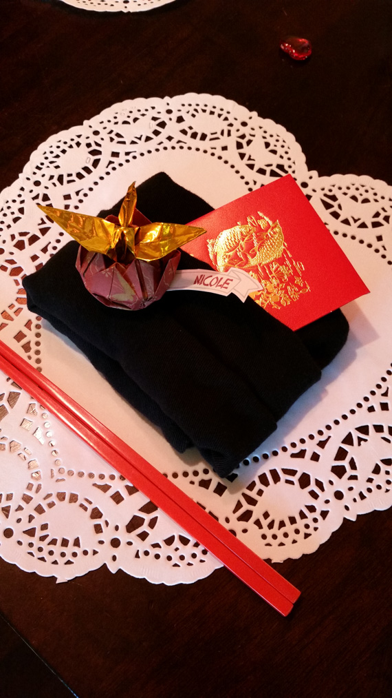 - Highlights: Asian food, drinks, origami favors
