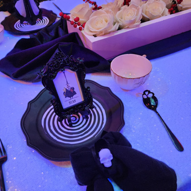 This birthday tea party brought Tim Burton’s beloved world to life, blending spooky charm with elegant afternoon tea. Guests were welcomed into a setting inspired by Halloween Town, complete with moody florals, striped accents, and playful nods to Jack, Sally, and friends. The table featured themed treats and cocktails that balanced the eerie and the sweet—perfect for a celebration that lives between two holidays.