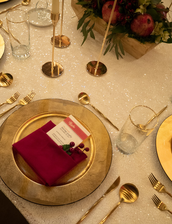Guests entered a cozy winter retreat where soft lighting and seasonal décor set a welcoming scene. The evening featured a curated menu of rich, comforting dishes paired with thoughtfully selected cocktails. A “favorite things” gift exchange added a playful and personal touch, with each guest sharing a small item they love. Thoughtful details—like custom place settings—added intimacy and charm, creating a memorable winter gathering that felt both elegant and heartfelt.